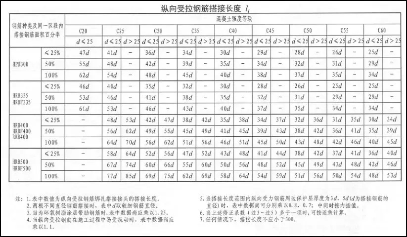 我們知道,11G101-1里的鋼筋搭接是要我們?nèi)ビ?jì)算的,應(yīng)該說(shuō)還是有點(diǎn)小麻煩的,而新版的16G101-1則簡(jiǎn)單多了,直接給出表格,只要一一對(duì)應(yīng)就可以了。而16G101也應(yīng)該是平常施工中用的最多的。